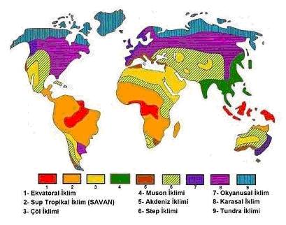 Dünyada görülen çeşitli iklim tipleri bulunmaktadır. Dünya üzerinde iklimlerin dağılışı ve özellikleri bölgelere göre değişiklik göstermektedir. Dünya’nın hemen hemen her bölgesinin kendine özgü bir iklim tipi bulunmaktadır.