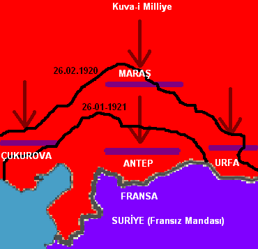 Fransa Sykes – Picot Antlaşması ile I.Dünya Savaşı sonrasında payına düşen yerleri almak için hareket geçmiştir. Sykes – Picot Antlaşması’na göre Maraş, Antep ve Urfa İngilizlere, Musul ise Fransızlara bırakılmıştır. Daha sonra İngiltere Musul petrolleri nedeniyle Fransa ile Suriye itilafnamesini imzalayarak paylaşılan yerleri kendi aralarında değiştirmişlerdir. Son paylaşıma göre, Maraş, Antep ve Urfa Fransızlara bırakılmıştır. Bu paylaşımdan sonra Güney Cephesi açılarak Fransızlarla Kuvay-i Milliye ordusu arasındaki mücadele başlamıştır.
