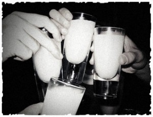 Eski uygarlıklar döneminde tüm dünyada en yaygın içilen içki, kuşkusuz üzümden yapılan şaraptır. Tarih boyunca çoğu insan, şarabına konan zehir ile zehirlenerek ölmüştür ve bu tür suikastlar oldukça yaygın bir şekilde kullanılmıştır. Eskide zamanlarda bir davet veren ve davetinde şarap ikram eden insanlar, misafirlerine şaraplarının zehirli olmadığını göstermek istemiştir. Kendisine güven duyulmasını isteyen davet sahibi, konuklarının içki kadehlerinden kendi kadehine dökmeleri için kadehini hava kaldırırdı. Her konuk kendi şarabının bir kısmını davet sahibininkine dökerken de, kadehler birbirine tokuşmuş olurdu. Yaygın olarak kabul edilen görüşlerden bu görüş; günümüzde içki içerken kadeh tokuşturmanın, bu kadar eski dönemlerden gelen ve karşısındakine güvenilir olduğunu göstermek için yapılan bir harekete dayandığıdır.