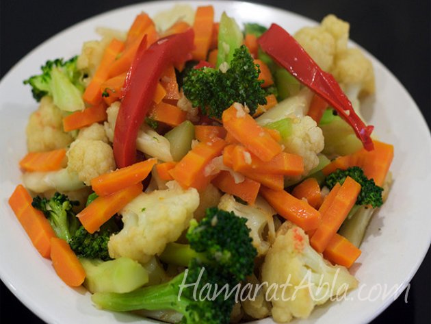 Malzemeler: Bir kaç çiçek karnabahar, bir kaç çiçek brokoli, 1 adet havuç, 1 tatlı kaşığı zeytin yağı, 3 kaşık sulu yoğurt