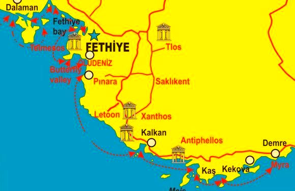 Kaş hemen 3 mil uzaklıkta Yunanistan’ın Meis adası ile komşudur. Etrafı tamamen yeşil maki topluluğu ile örtülüdür. Batısında Dalaman Havaalanına 160 km’dir. Doğuda Antalya havaalanına ise 200 km’dir. Karayoluyla ulaşım kuzeyden Antalya-Korkuteli-Elmalı-Kaş 200 km’dir. Yolları asfalttır. Meis Adası’na en yakın noktayı oluşturan Kaş, tarihi eserlerin yanı sıra tam bir doğa cennetidir.